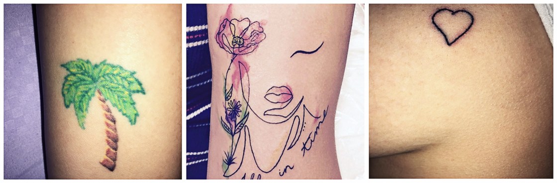 Santiago: “I got my first one in Miami. It’s a Palm tree. I got it with my mom and her best friend as a memory and also because we all share a love for palm trees. I got Amelia “All in time” three months later as a birthday gift from my momma. It’s my most meaningful piece. It has destructive flowers and colors to represent the hardships in my life and how, in time, I’ll always overcome anything, and happiness will always be a key factor. I got one today on my side boob. It’s a open heart. I just loved the concept of open tattoos and thought that would be a perfect spot.”