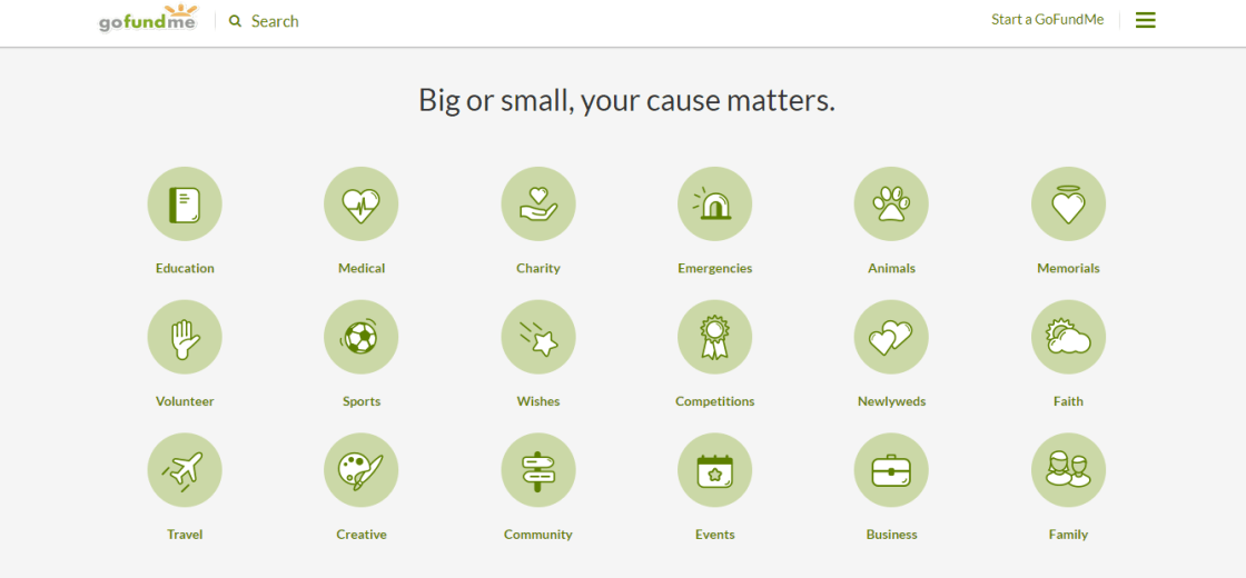 While the site is known to raise money for people during times of extreme financial crisis and medical need, GoFundMe’s categories cover a wide range of causes, including event and wish funding. According to the site’s homepage, over 10,000 people start campaigns on GoFundMe every day.