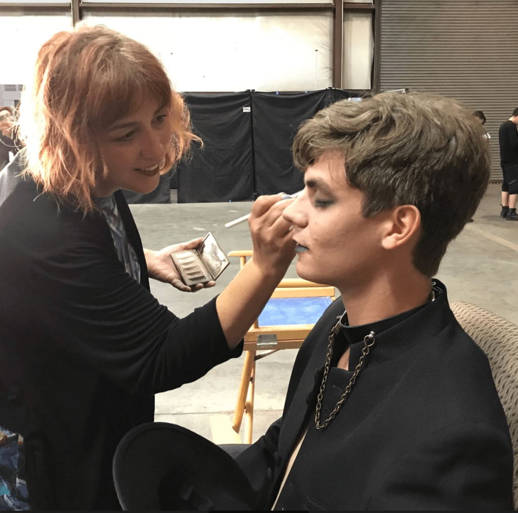 Janine applying makeup on set. Photo by Lorrie Latham.