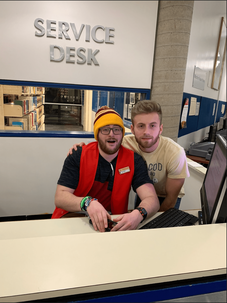While sitting at a table in the quiet area located on the third floor of the library, he is greeted by his friend, Ben Kremenek, who is between classes. Kremenek begins eating a freshly made sub from Subway.