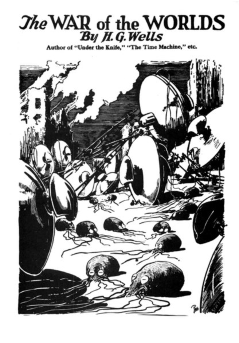 The original black-and-white cover of “The War of the Worlds.”