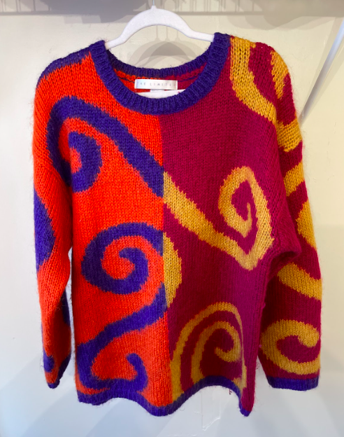 My favorite clothing item varies over time, often seasonally. One of my favorites currently is my vintage The Limited sweater. It’s perfect for winter. Made of 50% mohair, it traps heat in. Mohair also dyed exceptionally well, so the almost neon coloring really stands out. The oversized fit along with the bright colors really makes it a piece that will catch the eye, something I look for when picking out clothes.