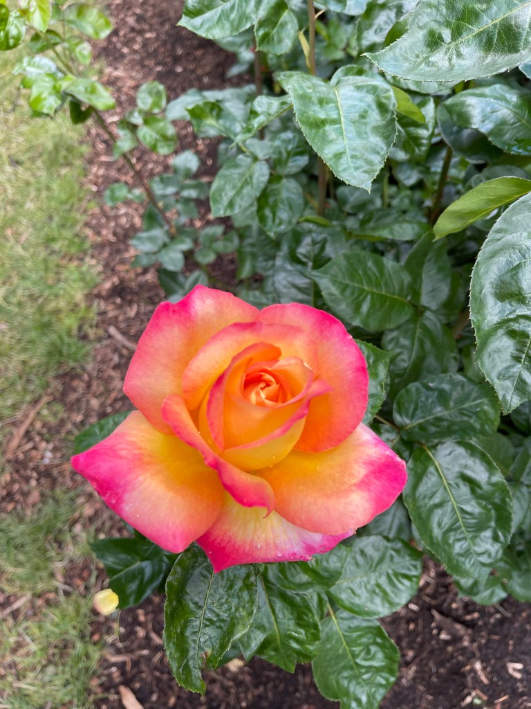 In the grandiflora class, this rose is titled Dick Clark, an honor for the TV personality. Almost neon in color, the pink overtakes the yellow center. This rose has won multiple awards, including the All-American Rose in 2011.