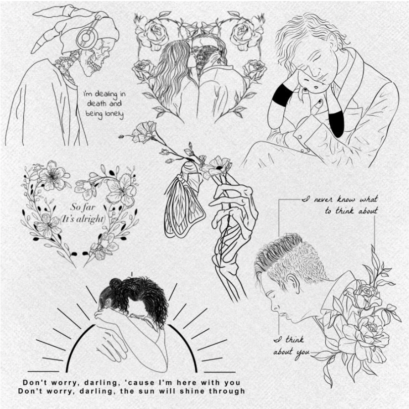 The Antalya Fashion Academy graduate decided to return to her love of drawing during the COVID-19 lockdown. She officially created her tattoo design account on Instagram in September 2020 under the handle “the1975tattoodesigns” where viewers can DM her to purchase a design at an affordable cost, some as low as 10€ (about $10.58). She also takes commissions, during which she will work very closely with a customer to create a personalized tattoo.