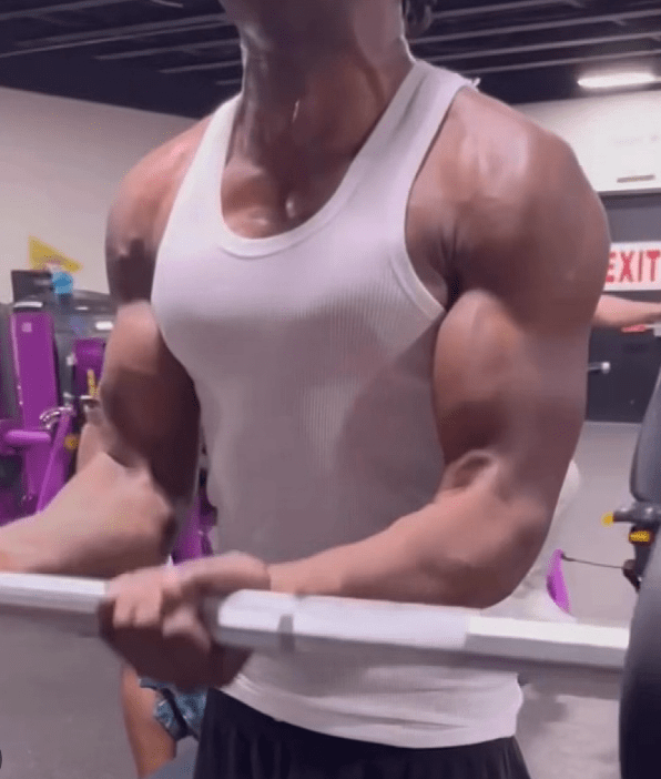 In detail, Walton starts with “4 sets of 8-10 bench presses, 4 sets of 8-10 reps of chest flies” and then he goes into cross body curls with a weight he is not only comfortable with but one that he can control.