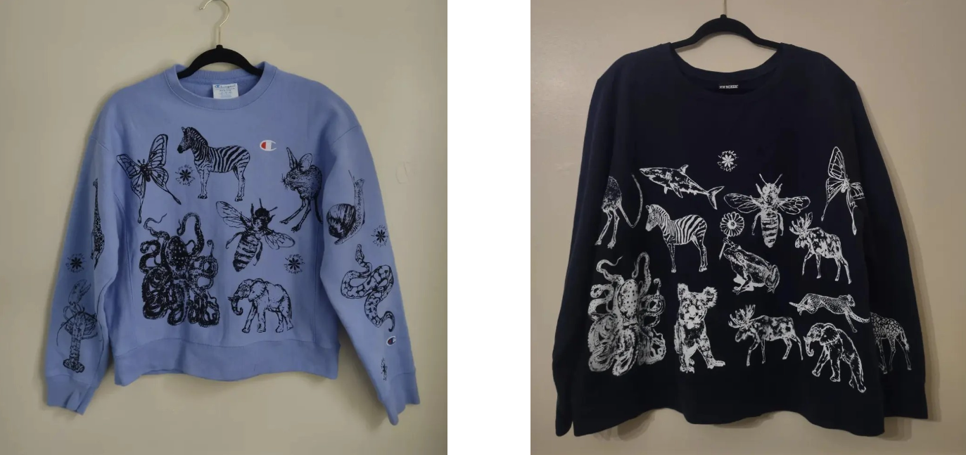 This time commitment is met with a driving passion for sustainability that can also be seen by Lorelei Pryor, a studio art major with a concentration in two-dimensional studies at Messiah University in Pennsylvania. Pryor dedicates time to her sustainable art and clothing brand Lorelei Designs, which utilizes recycled clothes like blank shirts from Goodwill that she then screenprints a design on.