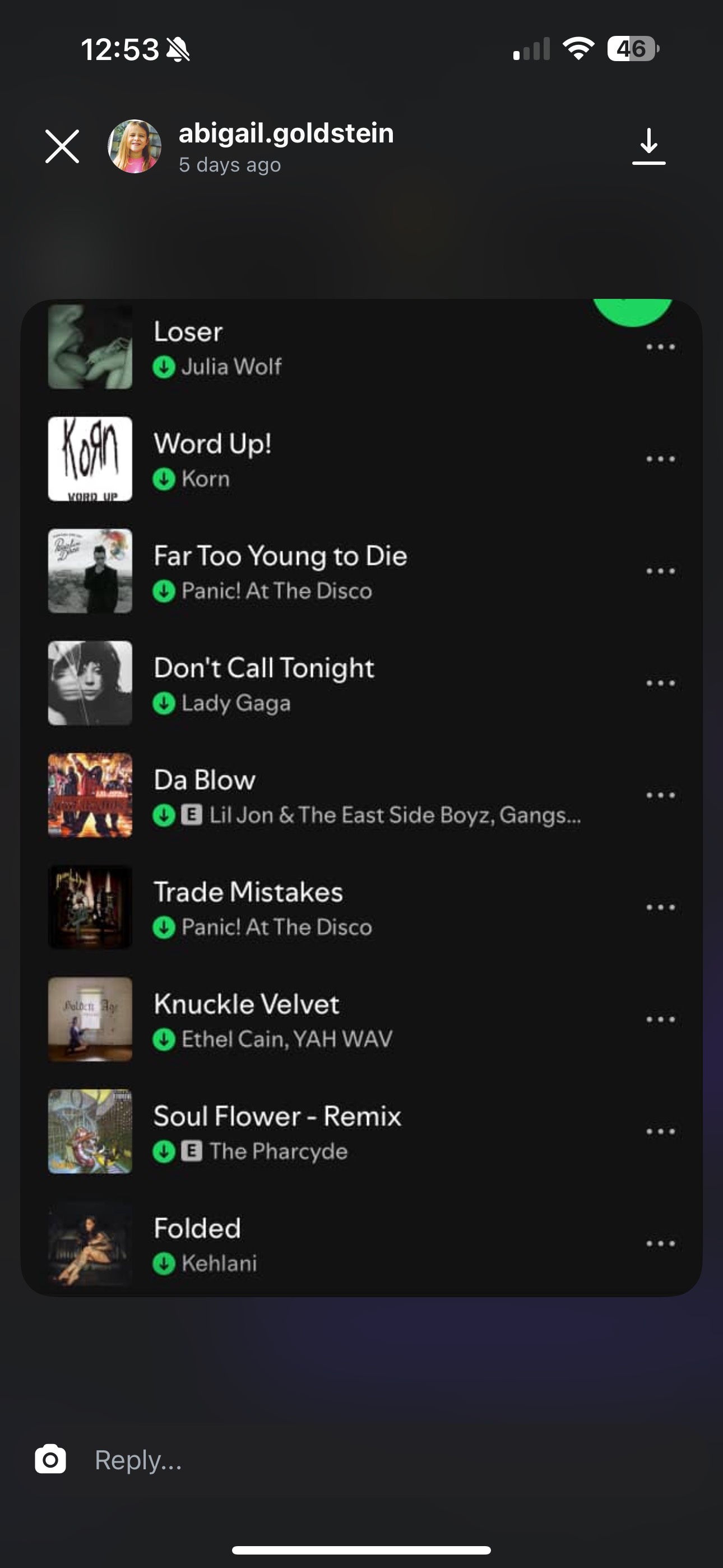 Kicking us off is biology major Abigail Goldberg. She listens to a mix of Y2K pop and R&B, while also blending in generations of rock. Listening to her playlist of Lady Gaga, Rihanna, and Panic At The Disco! will bring you back to the early 2010s. These nostalgia bombs pair masterfully with a mix of newer artists, including Julia Wolf, Charlie XCX, and Kehlani. The combination of pop, pop punk, and emo brings a refreshing, fun vibe to anyone’s playlist.